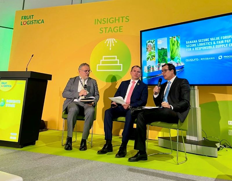 La conversación se dio durante el “Banana Secure Value Forum”, un espacio que reunió a importadores, cadenas de supermercados, autoridades portuarias y organismos de certificación para abordar los desafíos que hoy marcan el sector: seguridad logística, exigencias regulatorias y el aumento de inversiones necesarias para mantener operaciones social y ambientalmente responsables.