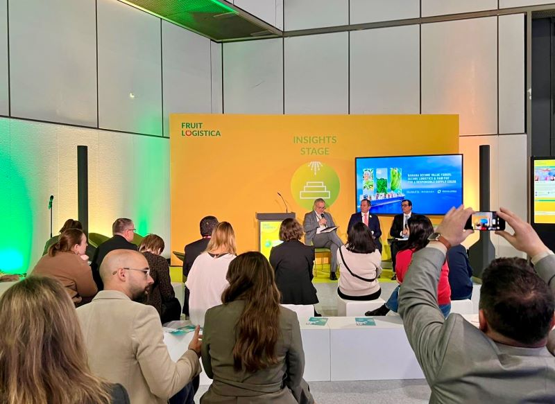 La conversación se dio durante el “Banana Secure Value Forum”, un espacio que reunió a importadores, cadenas de supermercados, autoridades portuarias y organismos de certificación para abordar los desafíos que hoy marcan el sector: seguridad logística, exigencias regulatorias y el aumento de inversiones necesarias para mantener operaciones social y ambientalmente responsables.